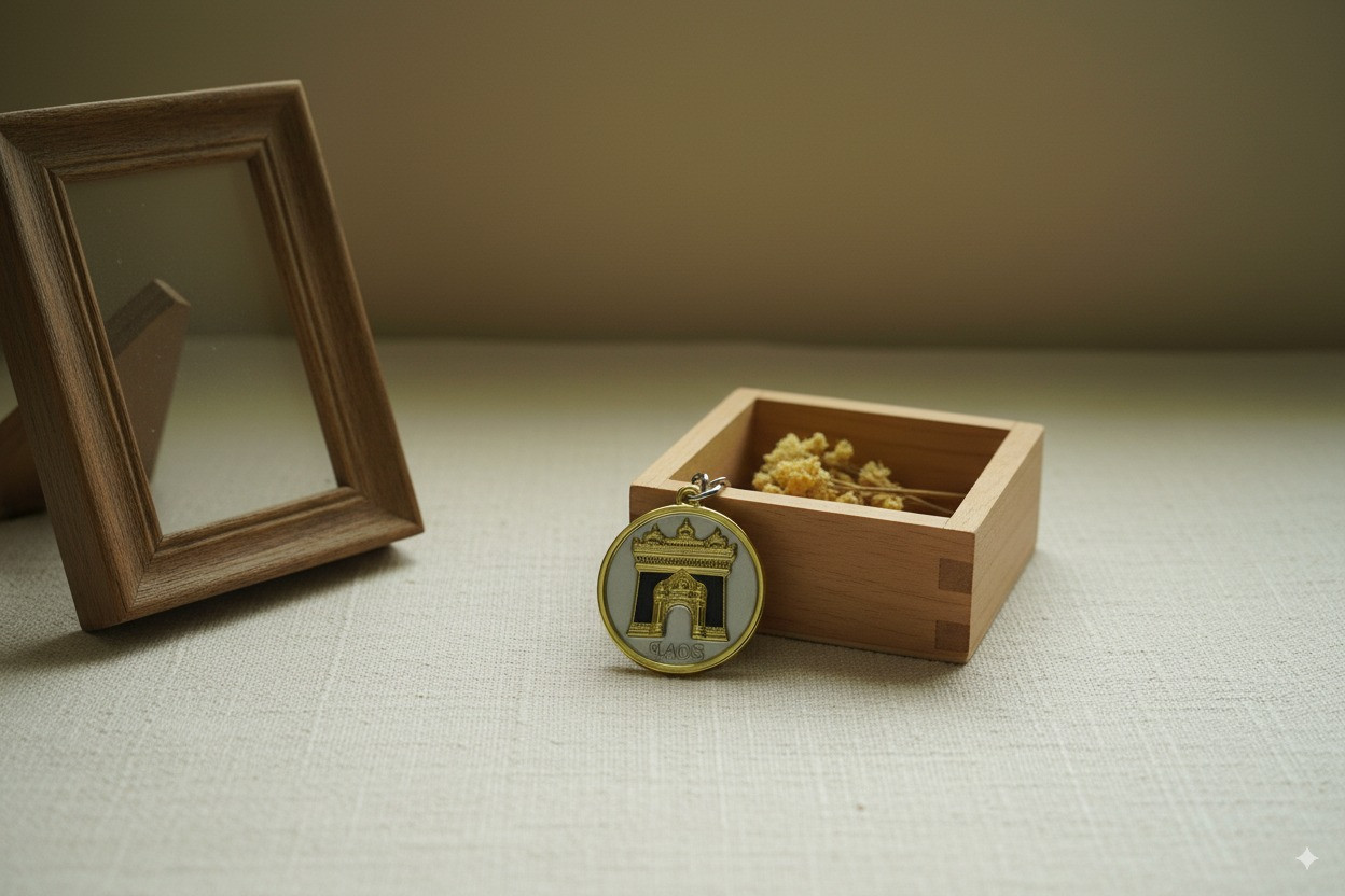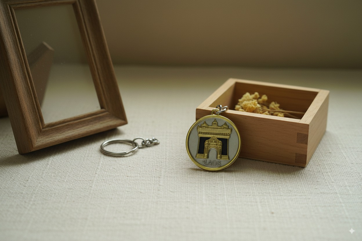 ຜະລິດຈາກໂລຫະທີ່ແຂງແຮງ ແລະມີລາຍລະອຽດທີ່ງົດງາມ, ພວງກະແຈຮູບປະຕູໄຊນີ້ຈະຊ່ວຍເພີ່ມຄວາມພິເສດໃຫ້ກັບສິ່ງຂອງທີ່ທ່ານມັກ. ເໝາະສຳລັບນັກທ່ອງທ່ຽວ ຫຼືຜູ້ທີ່ກຳລັງຊອກຫາຂອງທີ່ລະນຶກຈາກລາວ.